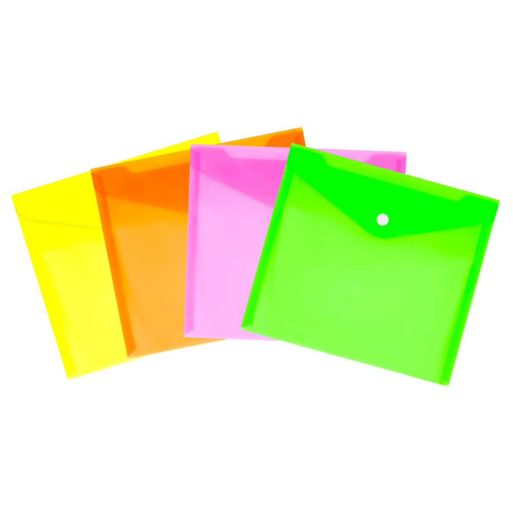 - Папка-конверт неоновая Стамм на кнопке - А5 - 150 мкм - Ассорти