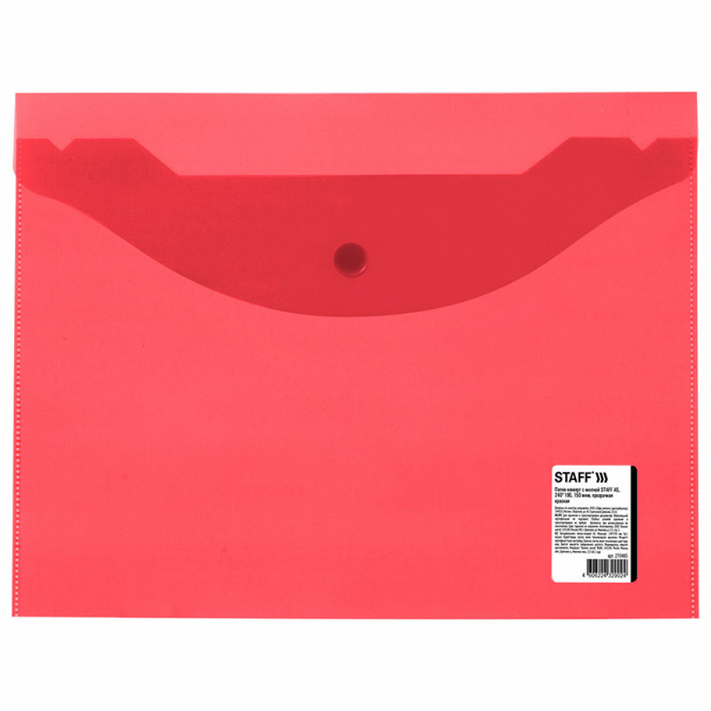 - Папка-конверт Staff на кнопке - 150 мкм - 240*190 мм - Красная
