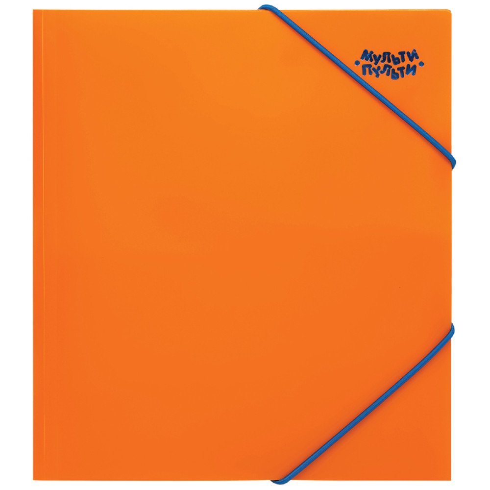 Папка на резинке Мульти-Пульти оранжевого цвета формата А5. Надёжно защищает листы бумаги от изломов, пыли и влаги. Закрывается с помощью двух эластичных резинок, закреплённых по углам папки. Изделие свободно помещается в портфель или рюкзак. Пригодится школьникам и их родителям.
