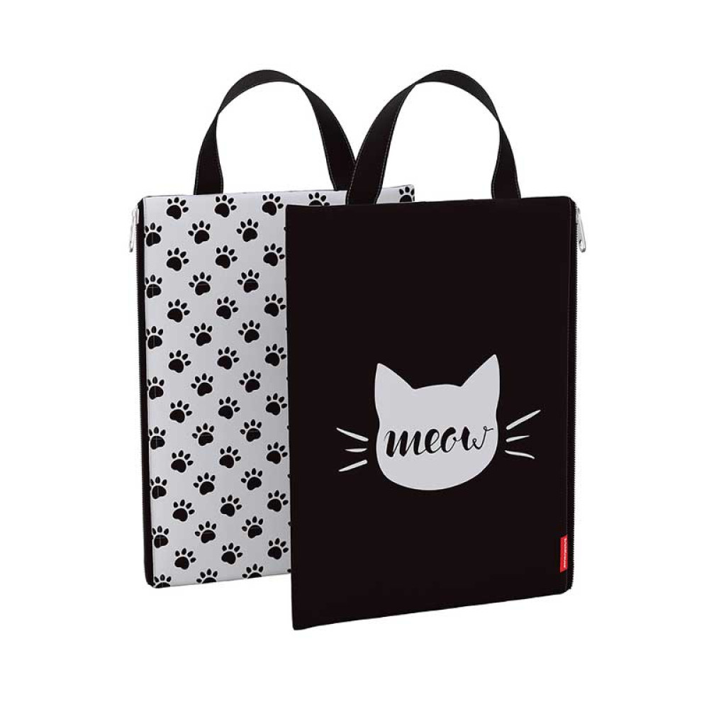 Папка текстильная Erich Krause "Meow" на молнии с ручками. Предназначена для транспортировки учебных принадлежностей, документов и различных аксессуаров. Имеет одно большое отделение с расширением, застежка на молнии с мягким ходом. Для комфортной переноски ручки папки выполнены из прочной стропы.
