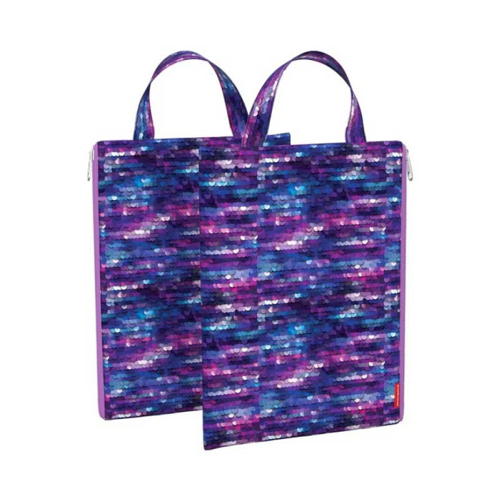 Папка текстильная Erich Krause "Purple Print" на молнии с ручками. Предназначена для транспортировки учебных принадлежностей, документов и различных аксессуаров. Имеет одно большое отделение с расширением, застежка на молнии с мягким ходом. Для комфортной переноски ручки папки выполнены из прочной стропы.