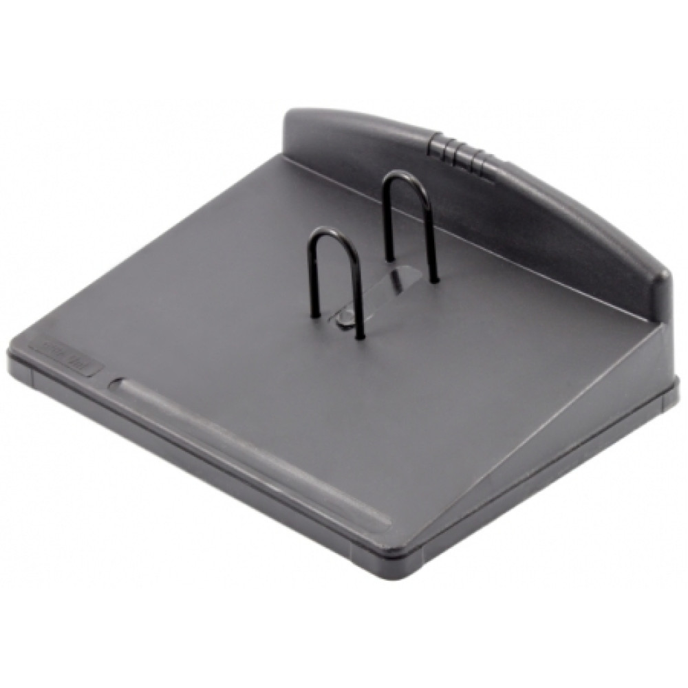 Подставка для перекидного календаря «Классик» имеет легкий наклон для удобства обзора и листания календаря. Чуть ниже площадки для календаря сделано специальное углубление, куда удобно положить ручку или карандаш, чтобы при необходимости быстро делать пометки. Подставка изготовлена из высококачественного пластика и имеет матовый черный цвет.