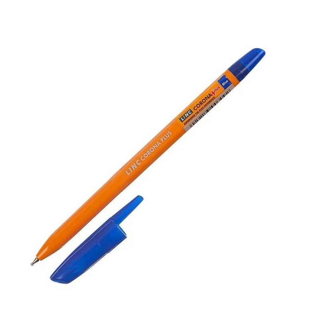 Ручка шариковая с синими чернилами Linc Corona Plus. Корпус оранжевый. Благодаря особой форме наконечника стержня и чернилам на масляной основе отличается чрезвычайно мягким приятным письмом, как и все ручки производства Linc.