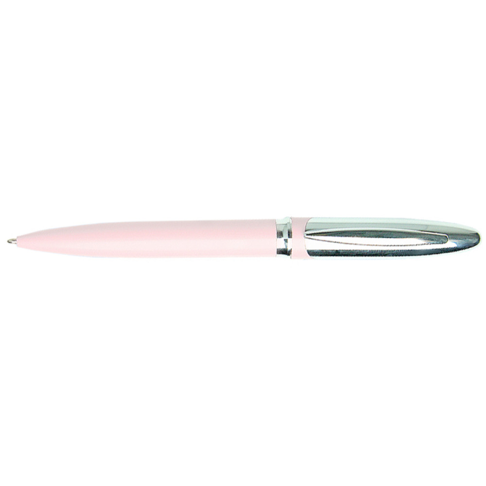 Стильная подарочная ручка с поворотным механизмом. Корпус розово-серебристо. Пишущий узел 0,7 мм. Цвет чернил - синий.