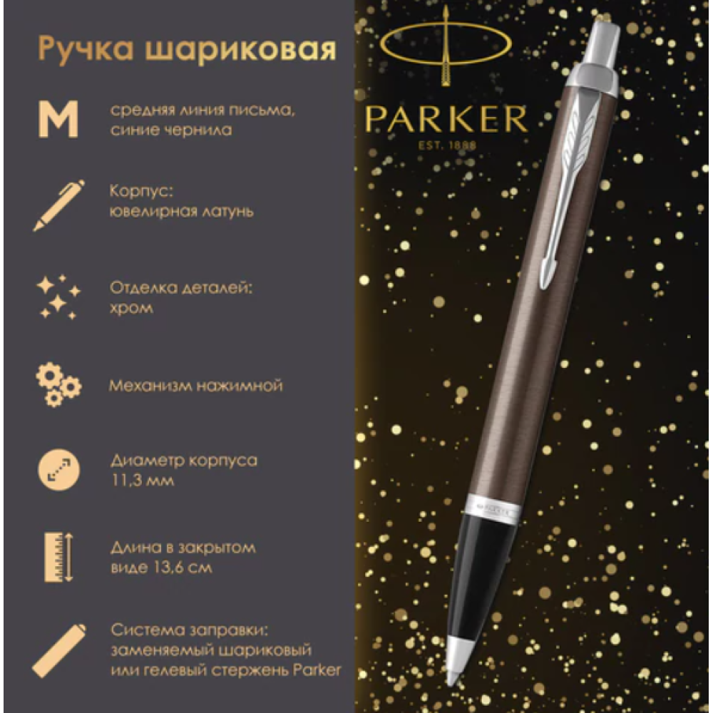 - Ручка подарочная автоматическая Parker IM Core Dark Espresso CT - Кофейный, хром - Синяя