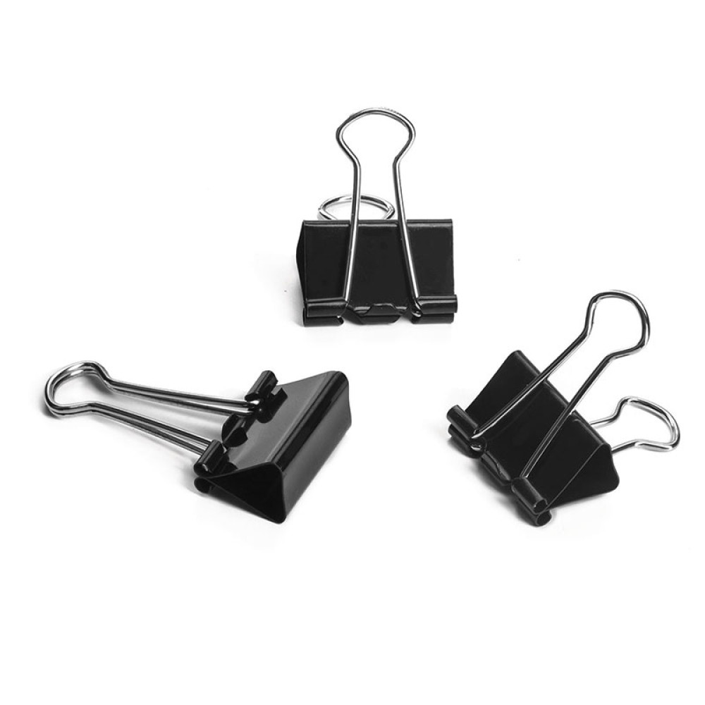Зажим для бумаг для скрепления документов без использования степлера. Изготовлен из стали с черным покрытием. Позволяет скреплять до 140 листов. Не деформирует бумагу. Поставляется по 12 штук в картонной коробке.
