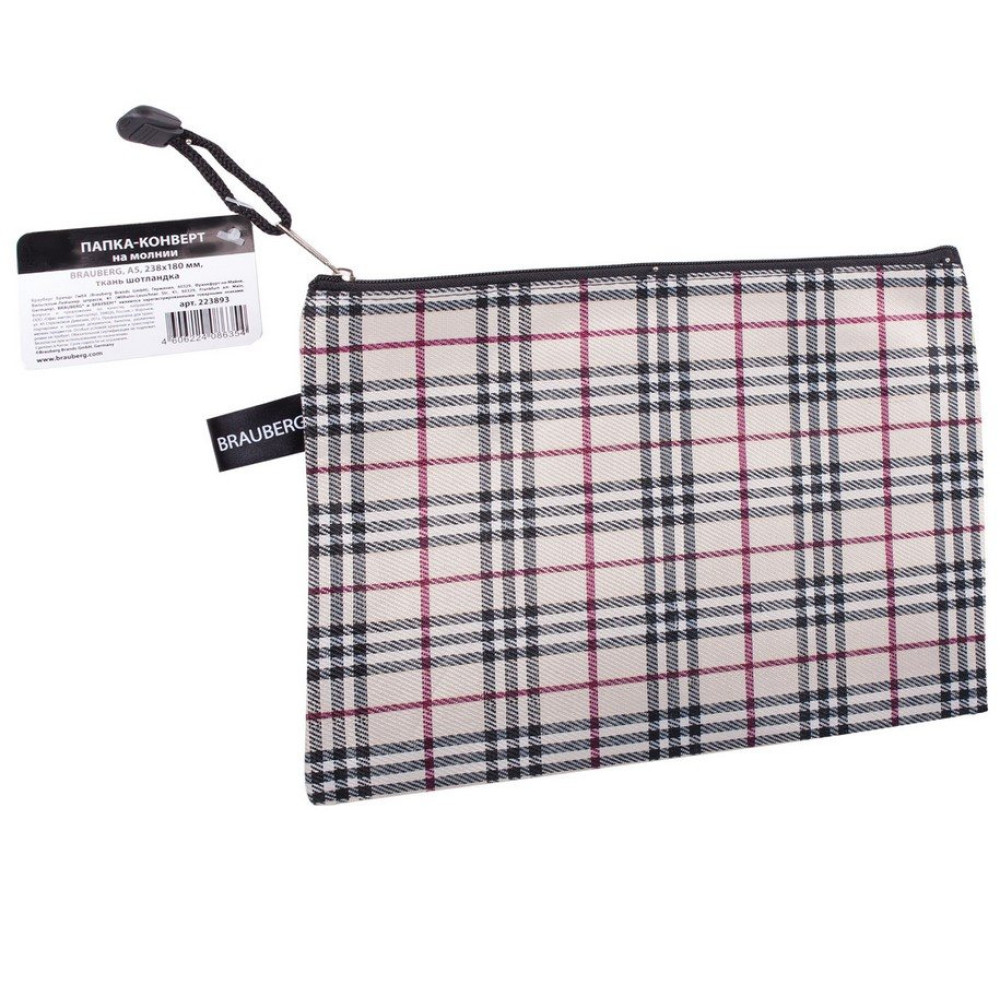 Папка-конверт Brauberg идеально подойдет для хранения и транспортировки документов. Изготовлена из прочного стильного текстильного материала в клетку. Формат А5 (238*180 мм). Герметичная застежка-молния защищает документы от механических повреждений, а также пыли и влаги. Цвет молнии - черный.