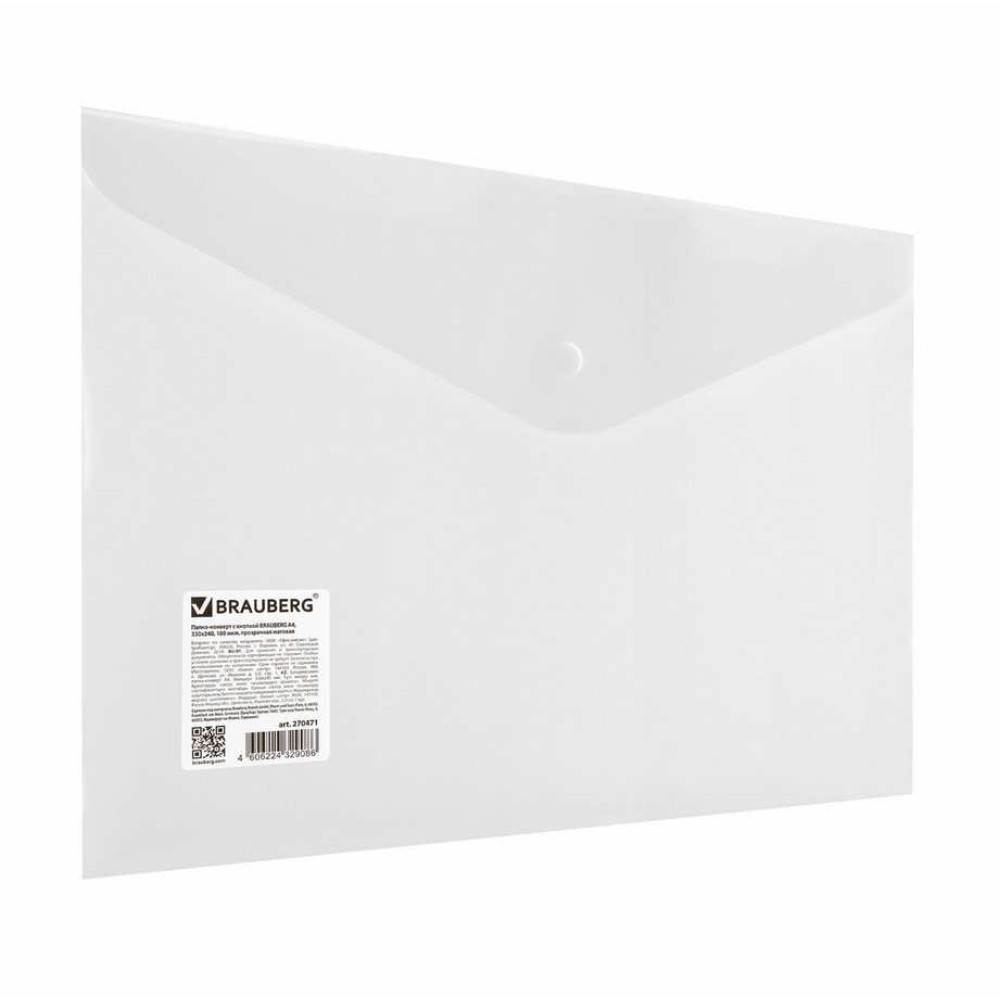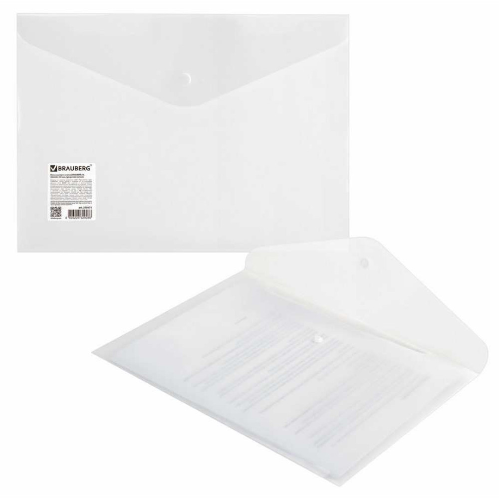 Папка-конверт Brauberg на кнопке - 180 мкм - А4 - Прозрачная