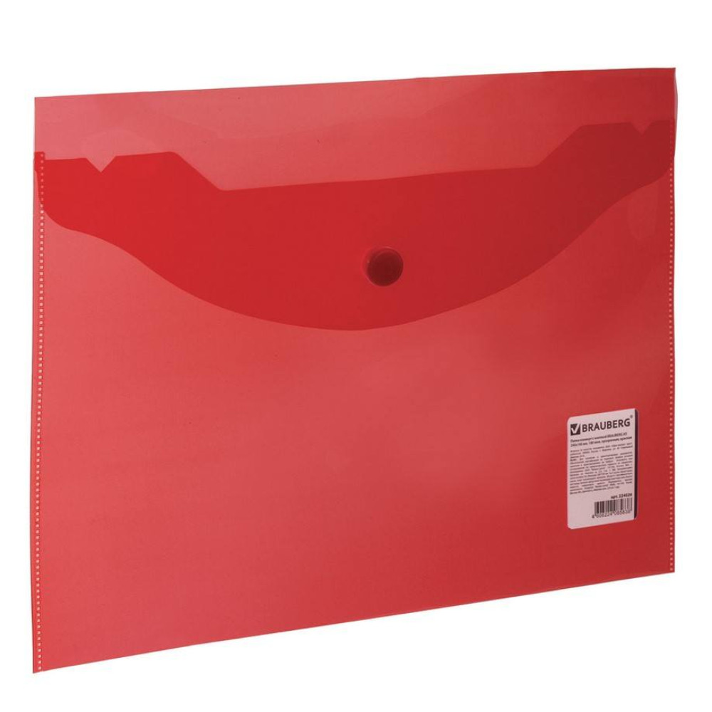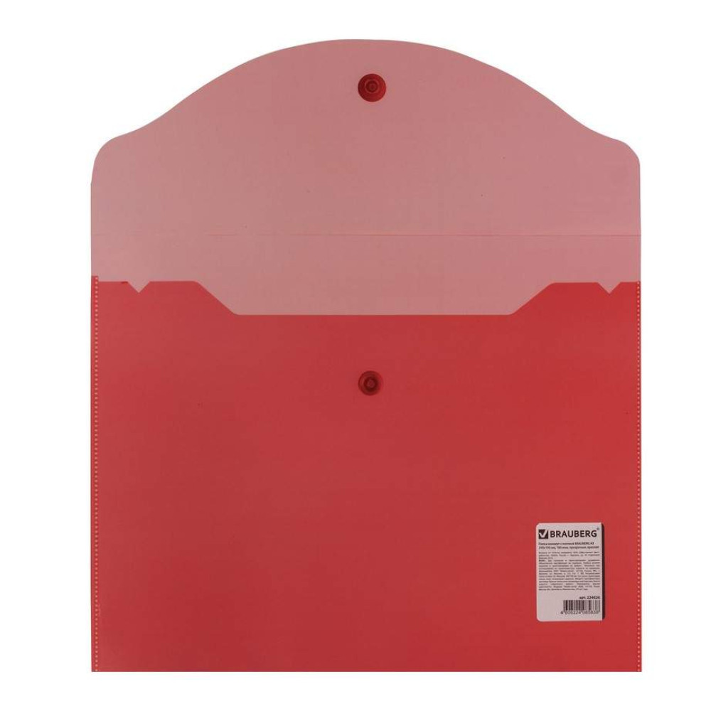 Папка-конверт Brauberg на кнопке - 180 мкм - А5 - Красный