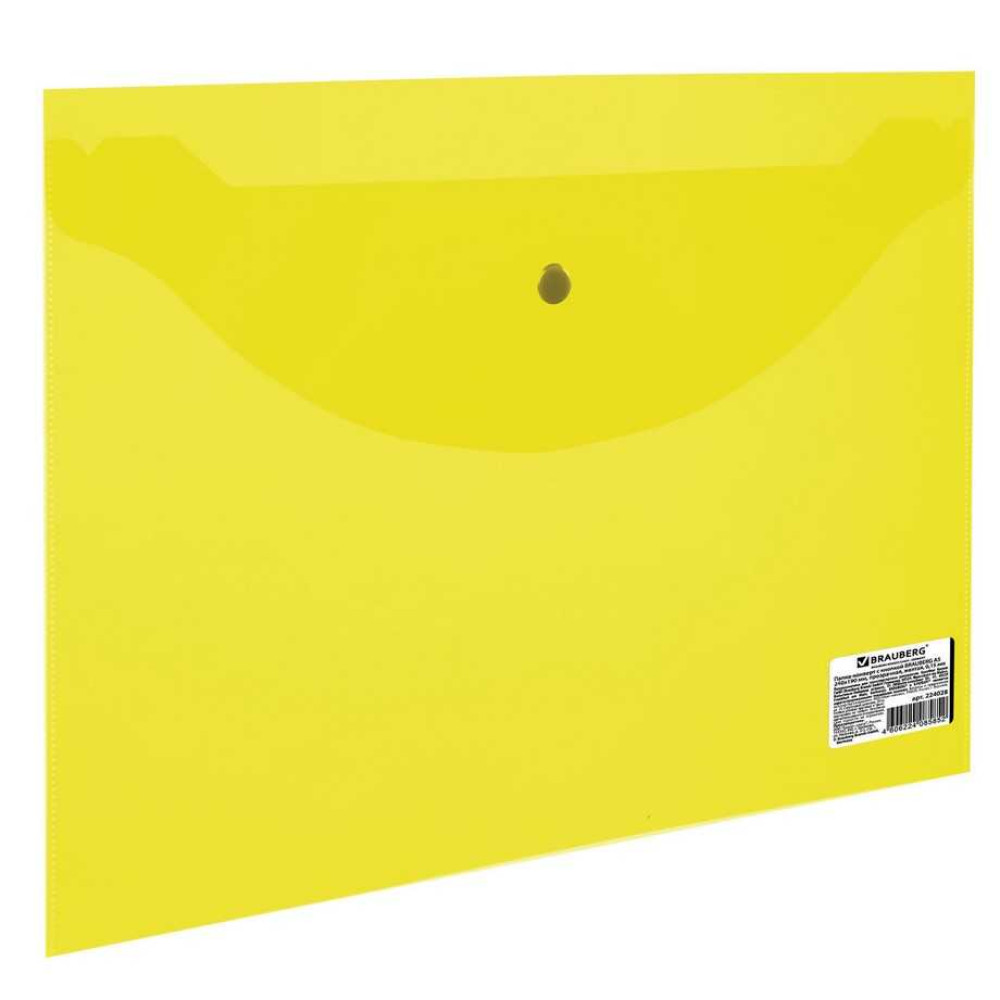 Папка-конверт Brauberg на кнопке - 180 мкм - А5 - Жёлтый