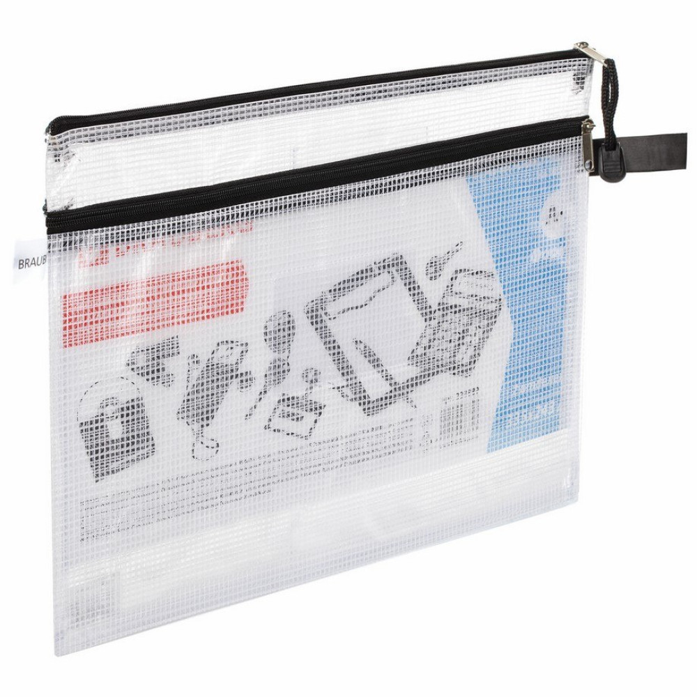 Папка-конверт Brauberg идеально подойдет для хранения и транспортировки документов. Изготовлена из прочного прозрачного пластика толщиной 0,3 мм с сетчатой фактурой и имеет 2 отделения. Формат А4 (335*243 мм). Герметичная застежка-молния защищает документы от механических повреждений, а также пыли и влаги. Цвет молнии - черный.