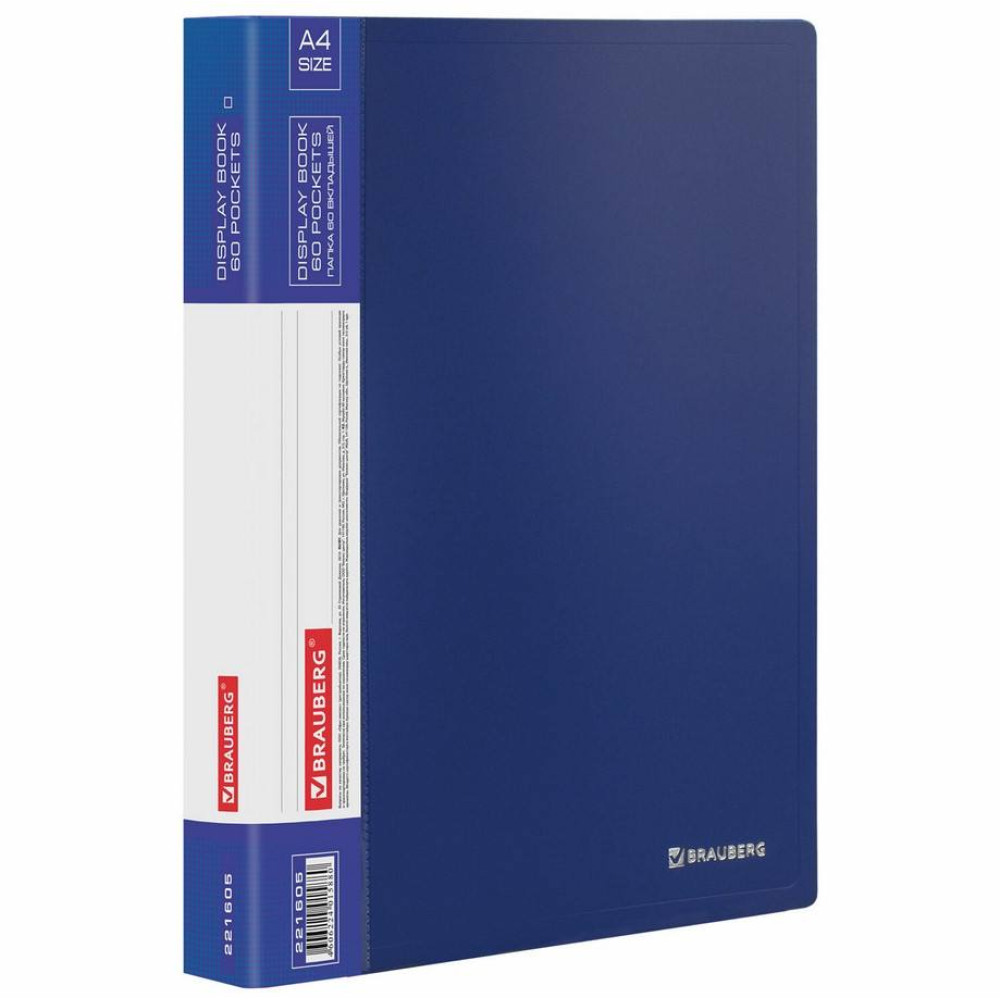 Папка с файлами Brauberg "Standart" солидного синего цвета отлично подходит для хранения документов, составления каталогов, меню и т.п. На корешке имеется карман для маркировки содержимого. Папка изготовлена из качественного пластика толщиной 0,8 мм с антибликовой фактурой, а ширина корешка составляет 35 мм. Содержит 60 вкладышей, позволяющих хранить документы формата А4 и обеспечивающих их надежную защиту от попадания влаги, пыли и прочих повреждений. Поставляется в индивидуальной упаковке.