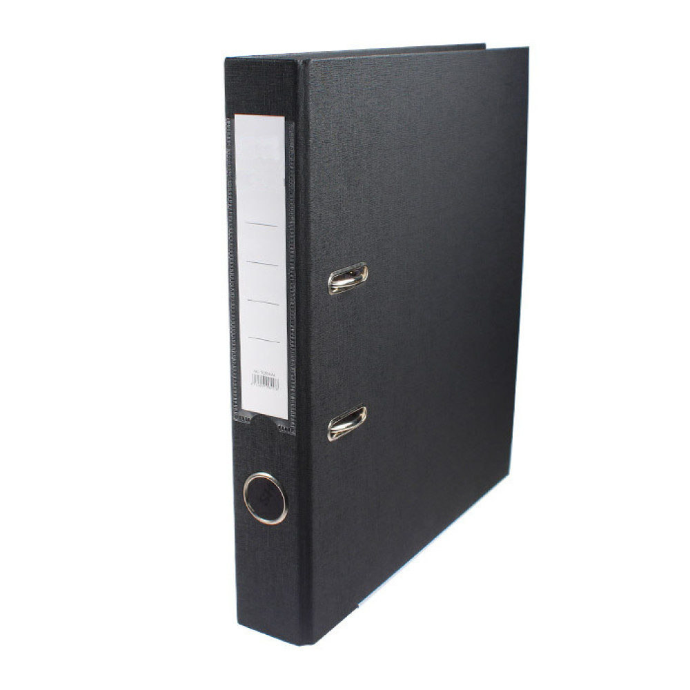 Папка-регистратор 553 чёрного цвета с высотой арочного механизма 50 мм. Снабжен металлическими уголками, сменной этикеткой для подписи и удобным окошком для выемки с полки. Специальные прорези фиксируют папку в закрытом положении, предохраняя от непроизвольного открывания.