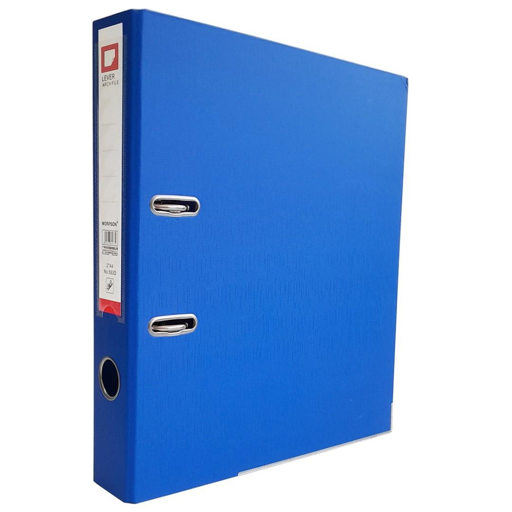 Папка-регистратор 553 синего цвета с высотой арочного механизма 50 мм. Снабжен металлическими уголками, сменной этикеткой для подписи и удобным окошком для выемки с полки. Специальные прорези фиксируют папку в закрытом положении, предохраняя от непроизвольного открывания.