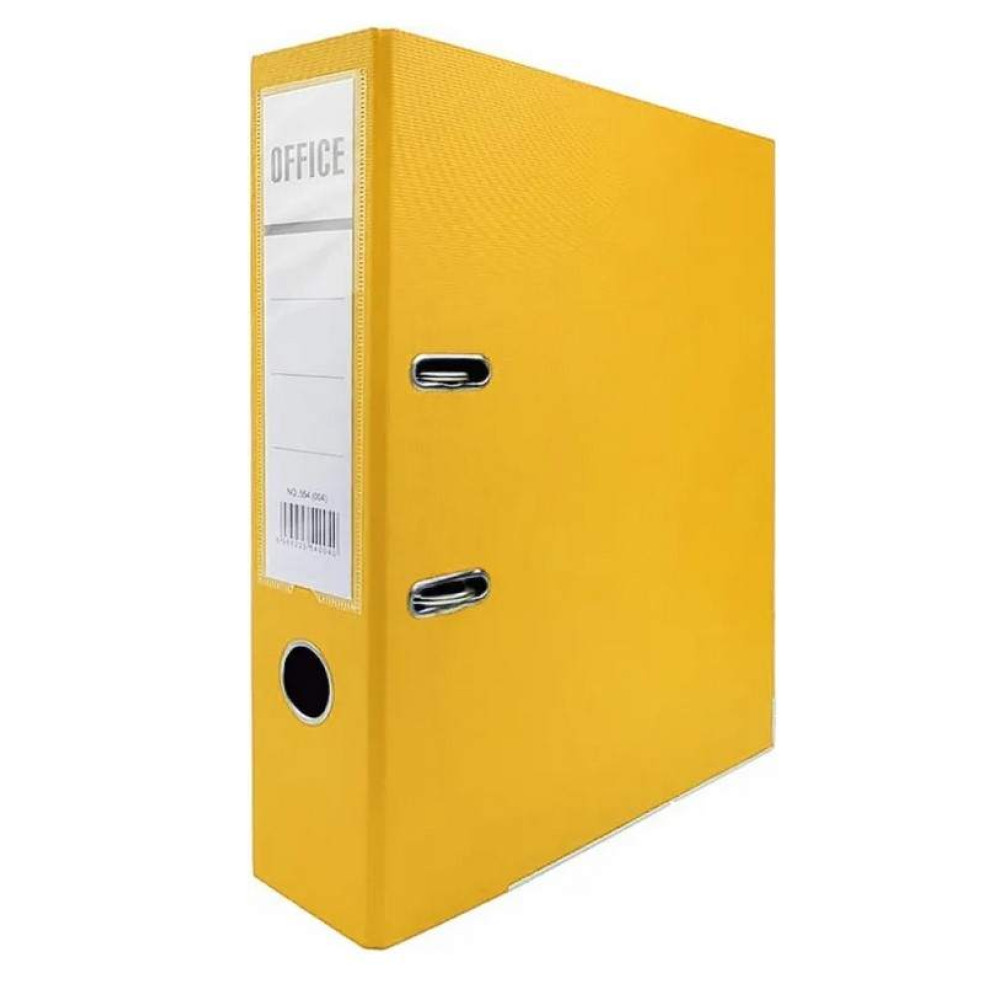 Папка-регистратор 554 жёлтого цвета с арочным механизмом высотой 70 мм. Папка изготовлена из одностороннего покрытия ПВХ. Снабжен металлическими уголками, сменной этикеткой для подписи и удобным окошком для выемки с полки. Специальные прорези фиксируют папку в закрытом положении, предохраняя от непроизвольного открывания.
