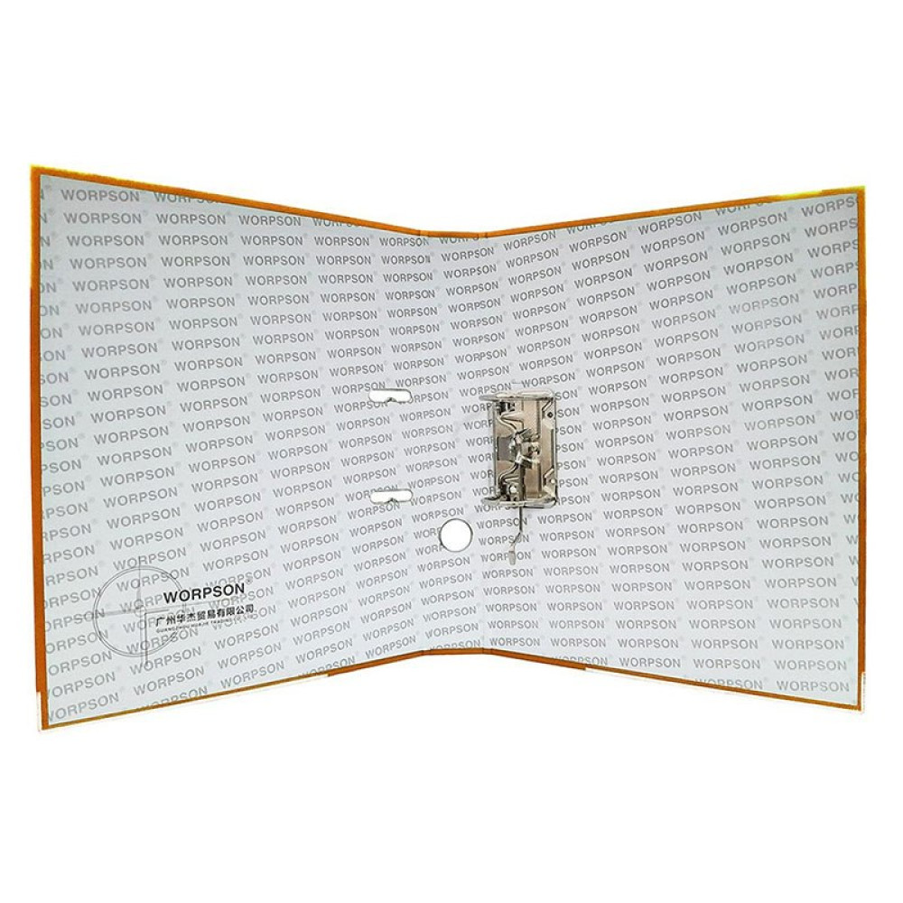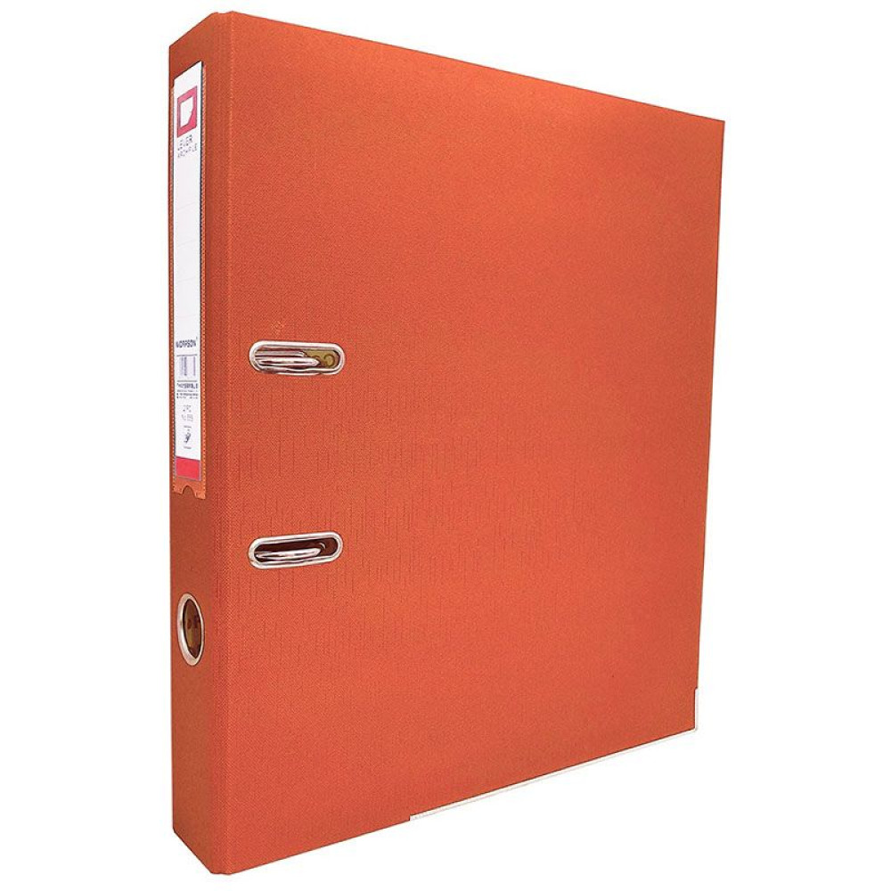 Папка-регистратор оранжевого цвета с высотой арочного механизма 50 мм. Снабжен металлическими уголками, сменной этикеткой для подписи и удобным окошком для выемки с полки. Специальные прорези фиксируют папку в закрытом положении, предохраняя от непроизвольного открывания.