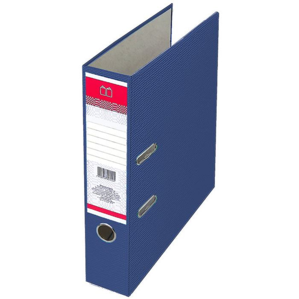 Папка-регистратор синего цвета с арочным механизмом высотой 70 мм. Папка изготовлена из одностороннего покрытия ПВХ (бумвинил). Снабжен металлическими уголками, сменной этикеткой для подписи и удобным окошком для выемки с полки. Специальные прорези фиксируют папку в закрытом положении, предохраняя от непроизвольного открывания.