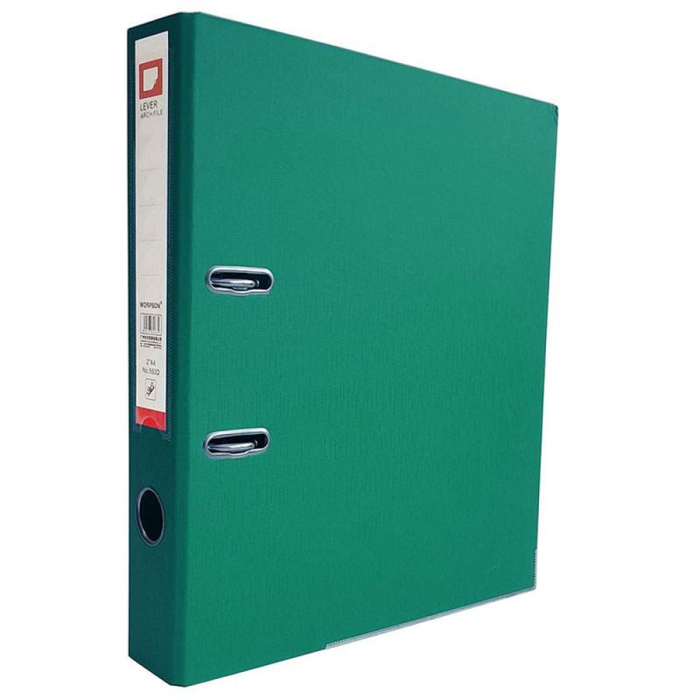 Папка-регистратор Hua Jie зеленого цвета. Папка-регистратор с арочным механизмом изготовлена из плотного картона покрыта износостойким ПВХ с двух сторон.Формат А4. Снабжена металлическими уголками, сменной этикеткой для подписи и удобным окошком для выемки с полки. Специальные прорези фиксируют папку в закрытом положении, предохраняя от непроизвольного открывания.