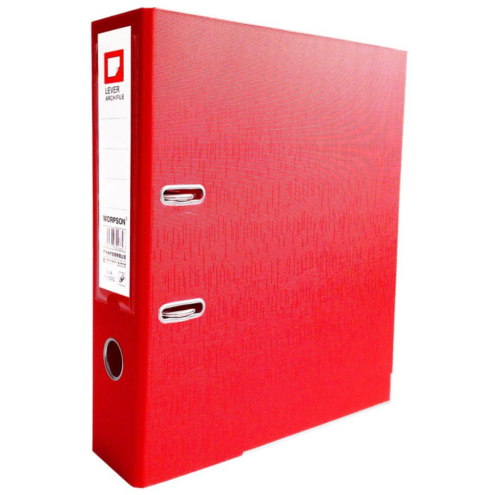 Папка-регистратор Hua Jie красного цвета с арочным механизмом высотой 75 мм. Выполнена из прочного картона толщиной 2 мм и покрыта износостойким ПВХ, что обеспечивает долговечность и защиту от загрязнений. Арочный механизм с прижимной планкой надежно удерживает документы на месте. Подходит как для документах в файлах, так и для перфорированных документов. Корешок 75 мм вмещает большой объем документов. Металлические уголки защищают края от повреждений. Специальные прорези фиксируют папку в закрытом виде, предотвращая случайное открытие. Окошко на корешке удобно для захвата и извлечения с полки.