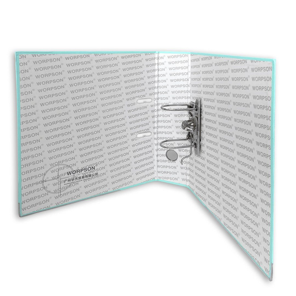 Папка-регистратор Hua Jie мятного цвета с арочным механизмом высотой 75 мм. Выполнена из прочного картона толщиной 2 мм и покрыта износостойким ПВХ, что обеспечивает долговечность и защиту от загрязнений. Арочный механизм с прижимной планкой надежно удерживает документы на месте. Подходит как для документах в файлах, так и для перфорированных документов. Корешок 75 мм вмещает большой объем документов. Металлические уголки защищают края от повреждений. Специальные прорези фиксируют папку в закрытом виде, предотвращая случайное открытие. Окошко на корешке удобно для захвата и извлечения с полки.