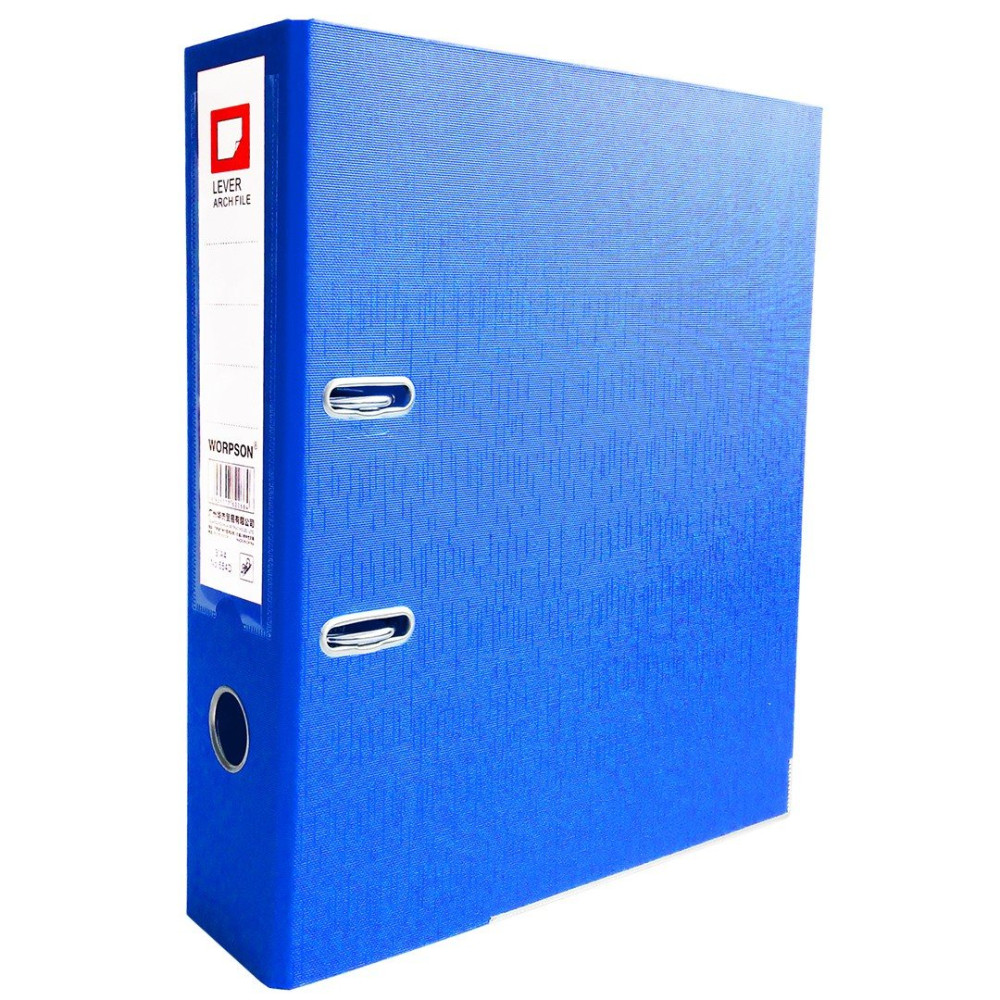 Папка-регистратор Hua Jie синего цвета с арочным механизмом высотой 75 мм. Выполнена из прочного картона толщиной 2 мм и покрыта износостойким ПВХ, что обеспечивает долговечность и защиту от загрязнений. Арочный механизм с прижимной планкой надежно удерживает документы на месте. Подходит как для документах в файлах, так и для перфорированных документов. Корешок 75 мм вмещает большой объем документов. Металлические уголки защищают края от повреждений. Специальные прорези фиксируют папку в закрытом виде, предотвращая случайное открытие. Окошко на корешке удобно для захвата и извлечения с полки.