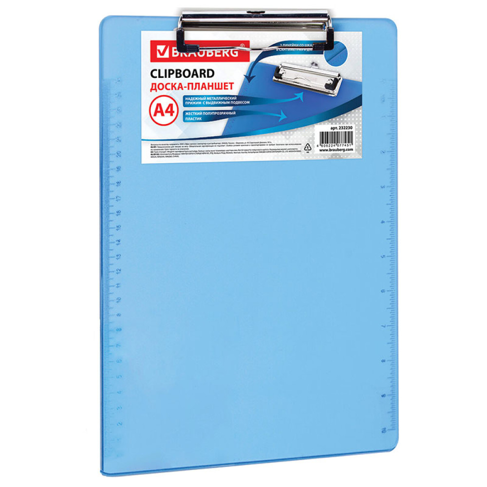 Планшет с зажимом Brauberg Energy - А4 - Пластик - Синий