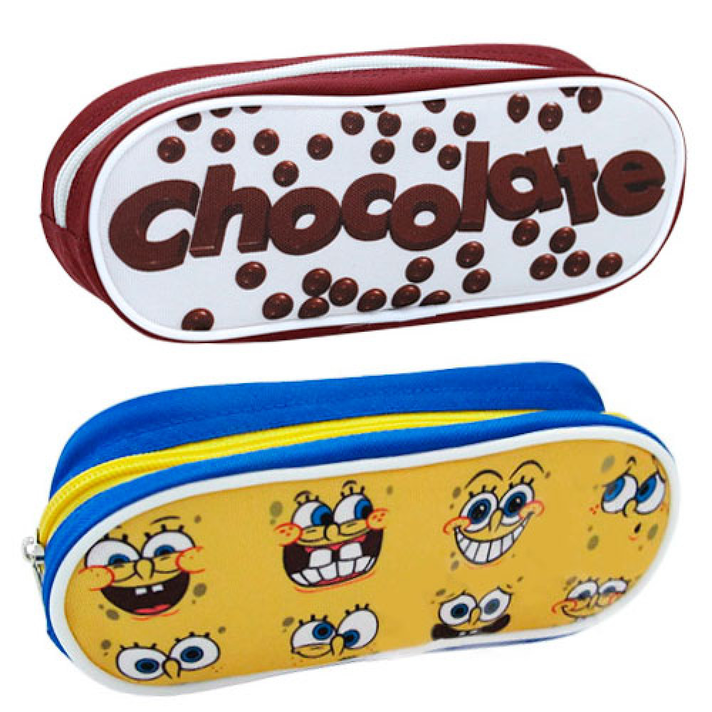 Удобный и вместительный пенал-футляр из текстиля с рисунком.nbsp; Рисунки ассорти: Губка Боб, Chocolate, Божья коровка.