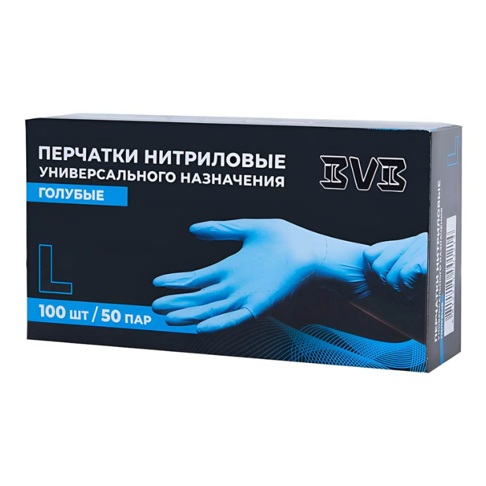 Перчатки нитриловые BVB неопудренные - Голубые - Размер L