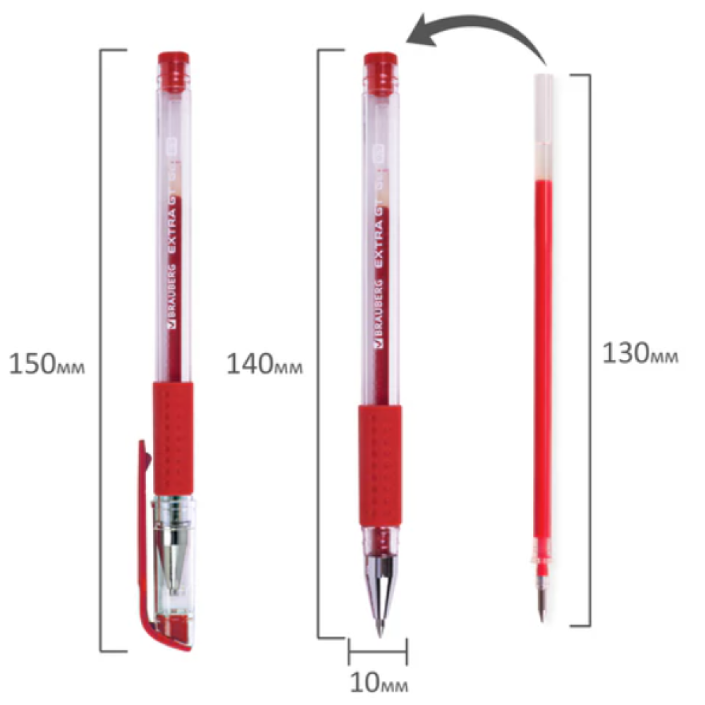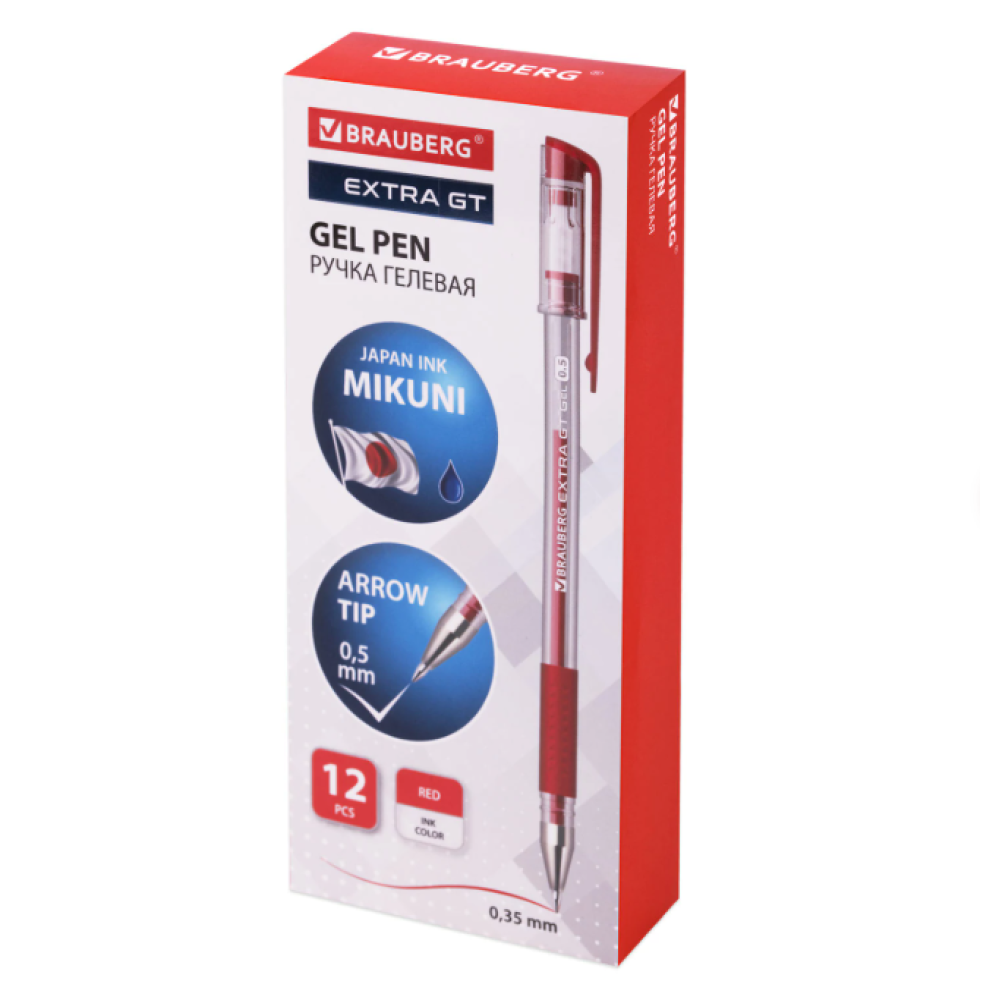 Гелевая ручка BRAUBERG "EXTRA GT" – классическая ручка для комфортного ежедневного письма. Гелевая ручка имеет круглый прозрачный корпус с грипом в зоне захвата. Детали ручки выполнены в цвет чернил. Сменный стержень длиной 130 мм со стандартным наконечником позволит использовать ручку максимально долго. Пишущий узел диаметром 0,5 мм создает линию письма, равную 0,35 мм. Японские чернила MIKUNI с насыщенным пигментом обеспечивают непревзойденное качество письма. Цвет чернил – красный.