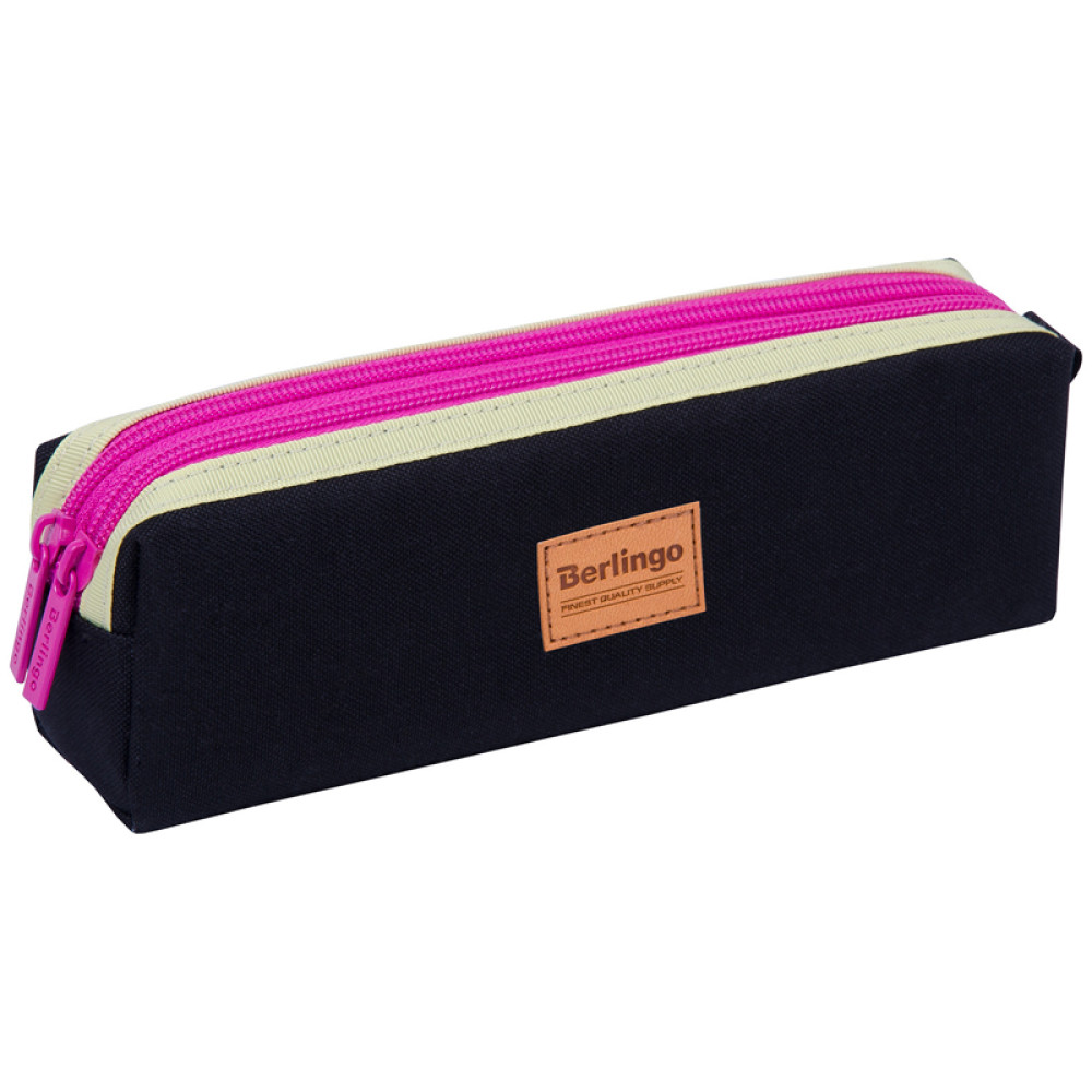 Мягкий пенал-косметичка Berlingo "Black star" с двумя отделениями. Модель выполнена из полиэстера ярких и пастельных цветов с контрастными молниями.