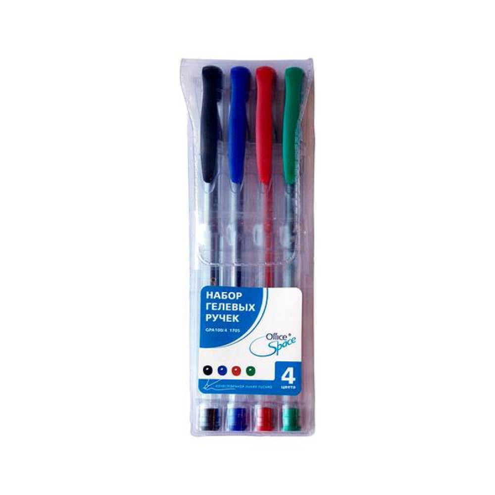 Четыре разноцветные гелевые ручки в прозрачном корпусе с колпачком (цвет клипа соответствует чернилам). Набор гелевых ручек включает самые популярные цвета для записей: черный, синий, красный и зеленый.