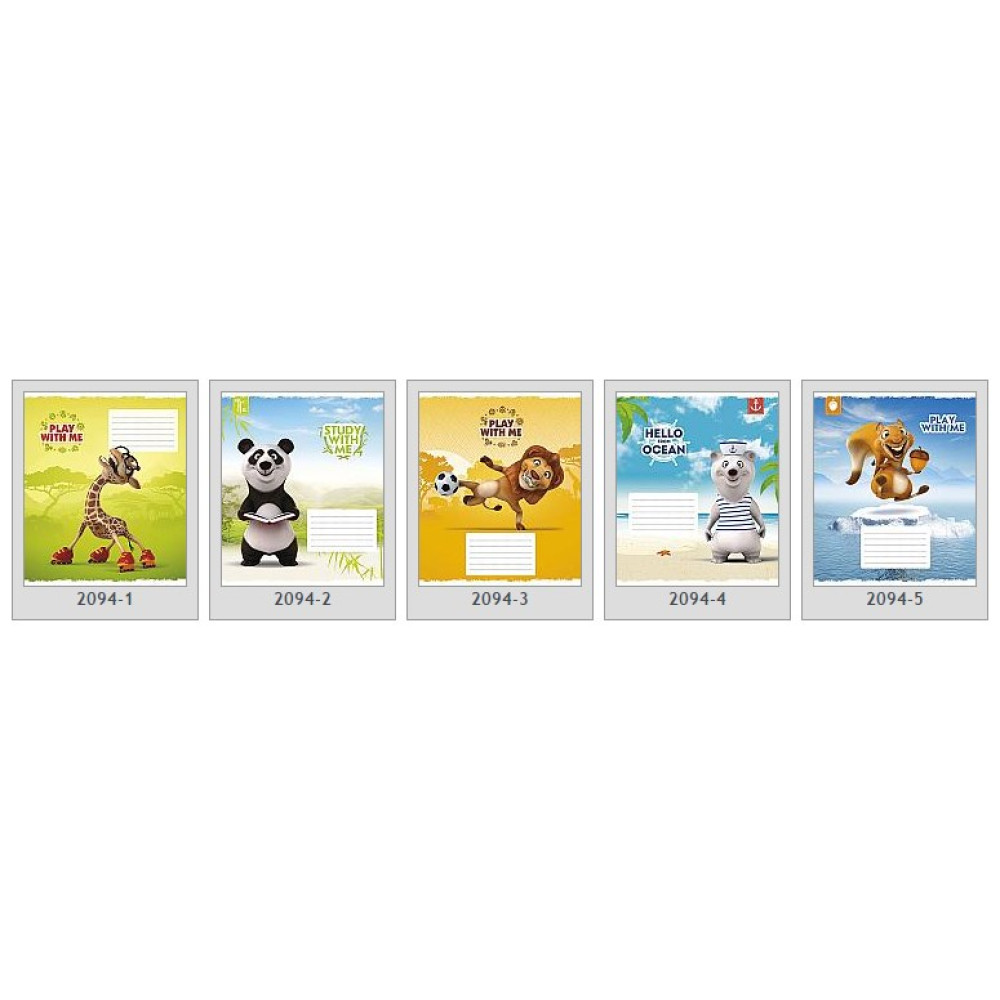 Школьная тетрадь на скобе с 12 листами в линейку. Цветная обложка оформлена рисунком и имеет поле для подписи.