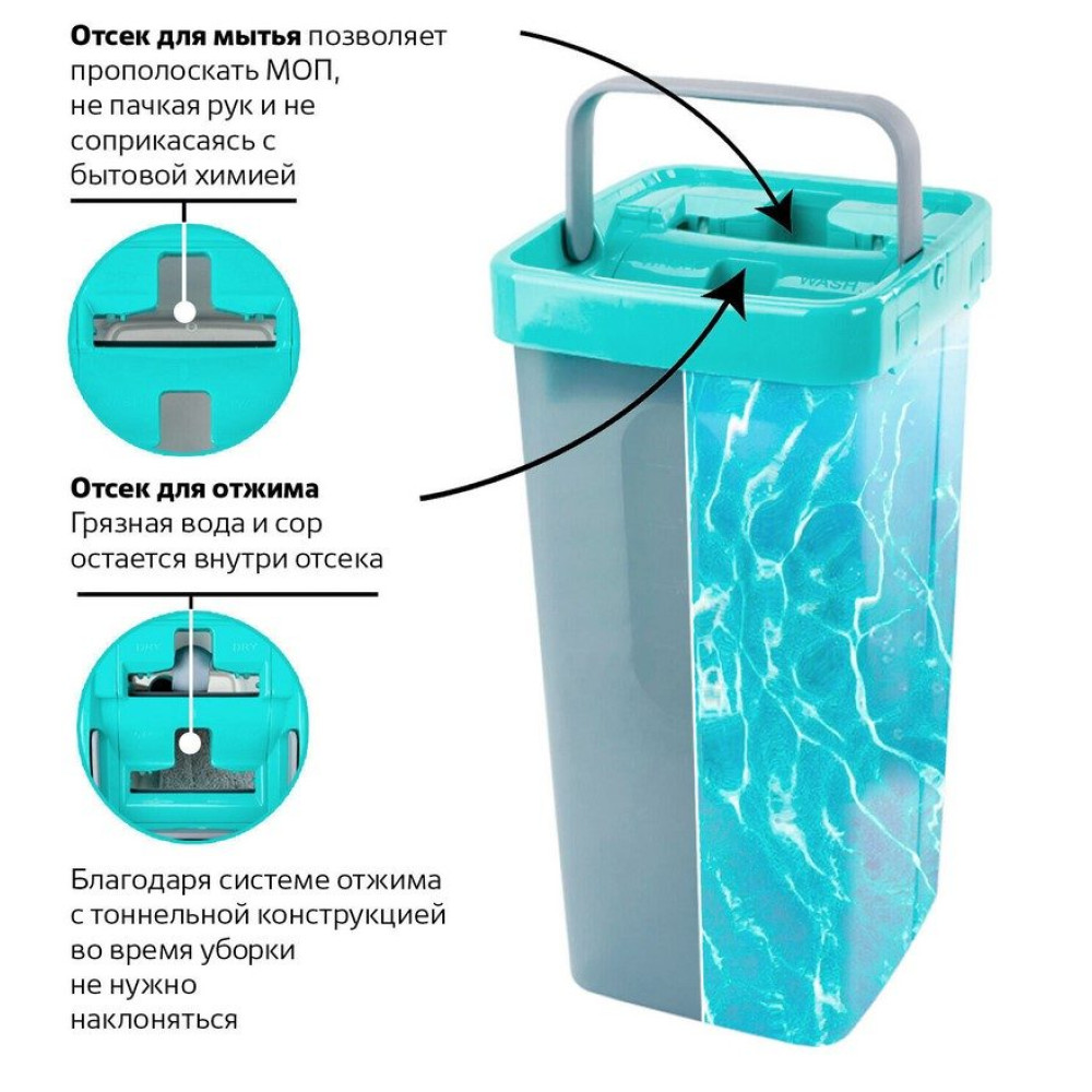 швабра + 3 насадки Моп (карманы с 2-х сторон), ведро с двумя отсеками