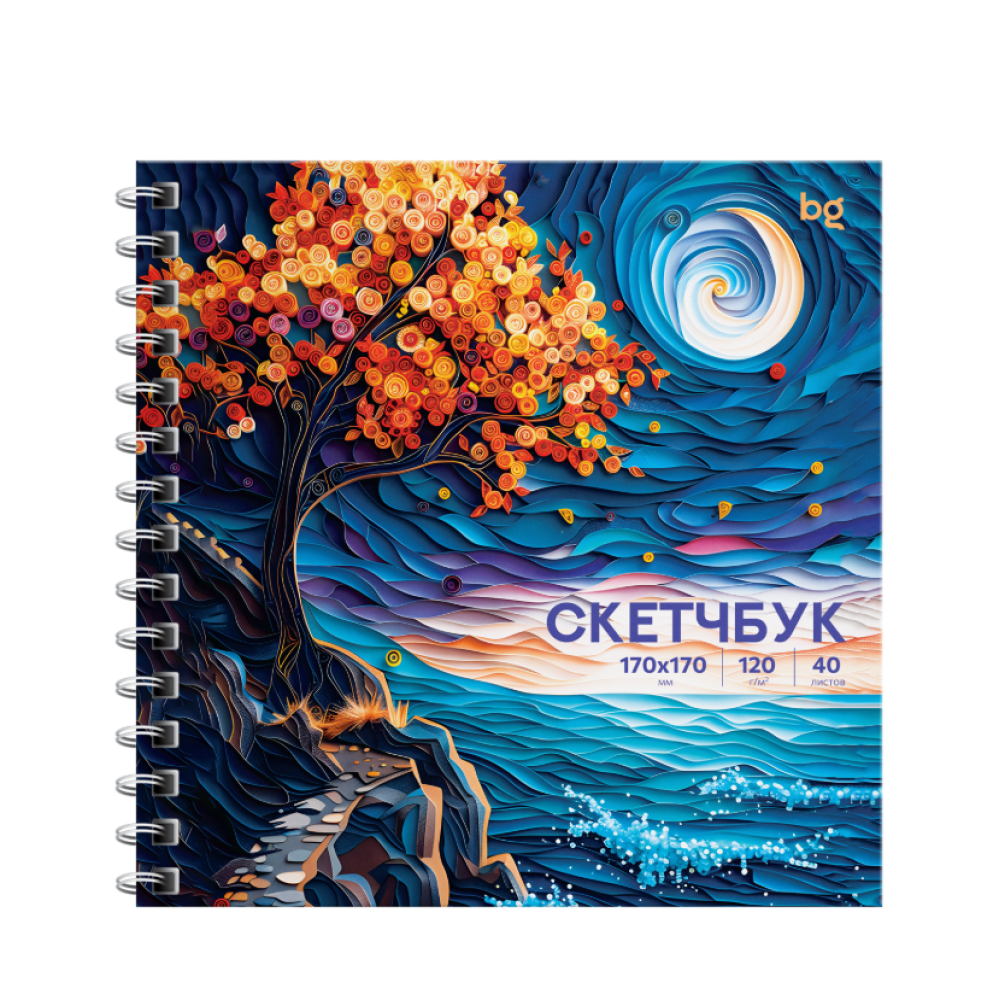 Скетчбук для зарисовок BG "Звездная ночь" состоит из 40 листов бумаги белого цвета, плотностью 120г/м2. Блокнот размером 170*170 мм удобно взять с собой. Листы скреплены спиралью по боковому краю, что позволяет переворачивать их как на 180, так и на 360 градусов. Блок на гребне делает использование тетради для зарисовок комфортным и надёжным. Все рисунки и записи будут храниться в одном месте. Скетчбук отлично подходит для рисования карандашами, пастелью, углем и другими сухими материалами. Обложка изготовлена из мелованного чистоцелюлозного картона плотностью 325 г/м2. Матовая ламинация и выборочный лак придают ему стильный и современный вид.