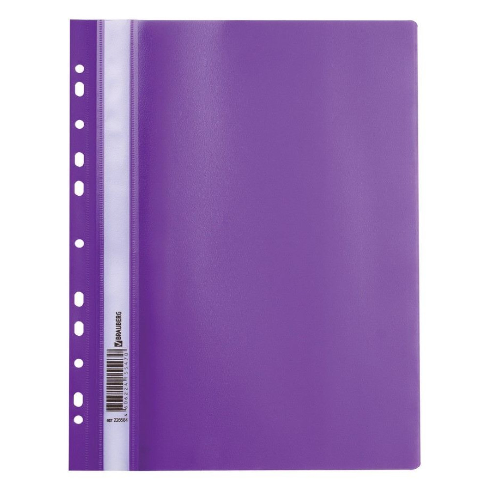 Скоросшиватель пластиковый Brauberg с дополнительной перфорацией - А4 - 180 мкм - Фиолетовый