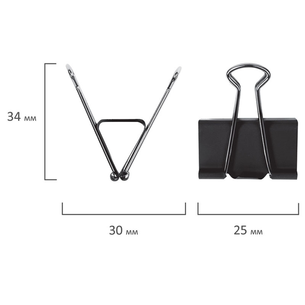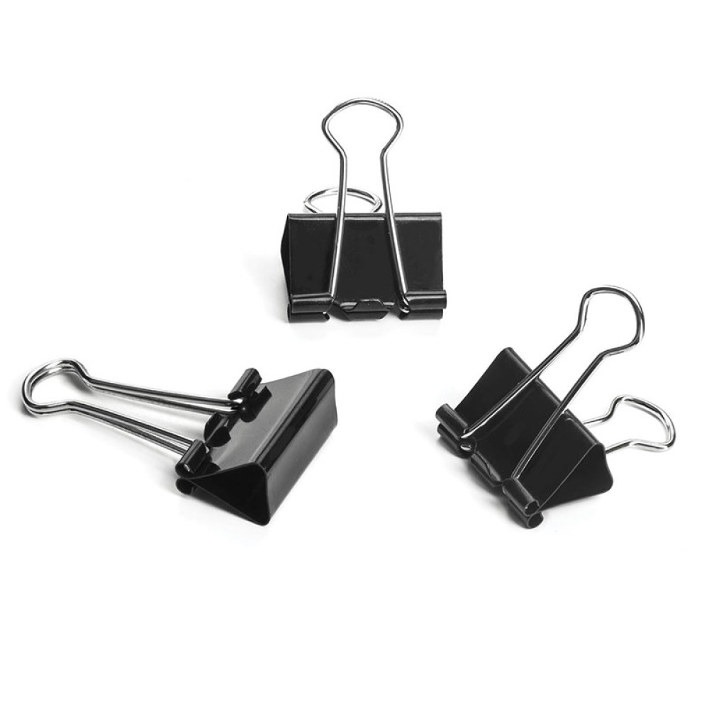 Зажим для бумаг для скрепления документов без использования степлера. Изготовлен из стали с черным покрытием. Позволяет скреплять до 100 листов. Не деформирует бумагу. Поставляется по 12 штук в картонной коробке.
