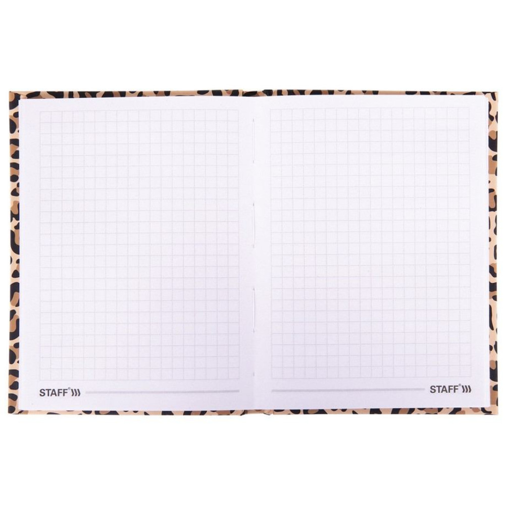 Блокнот Staff "Leopard" для записей и заметок с практичной твердой обложкой с матовой ламинацией. Жесткая обложка с матовой ламинацией и выборочным лакированием долго сохраняет привлекательный внешний вид и позволяет делать записи на весу. 80 листов позволят зафиксировать большой объем информации. Линовка блока в клетку дает возможность аккуратно заполнить цифровые значения, а также нанести чертежные зарисовки. Внутренний блок выполнен из офсета белого цвета плотностью 60 г/м2 и крепится к обложке с помощью книжного переплета. Формат блокнота А6 позволит владельцу поместить его в кейс или сумку малых габаритов. Обложка блокнота с оригинальным рисунком - стильное решение среди записных аксессуаров.