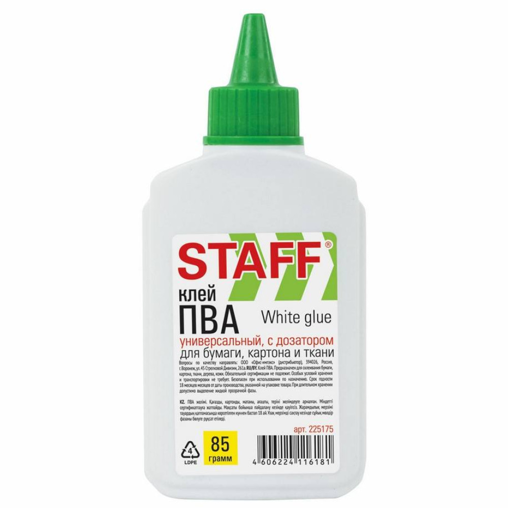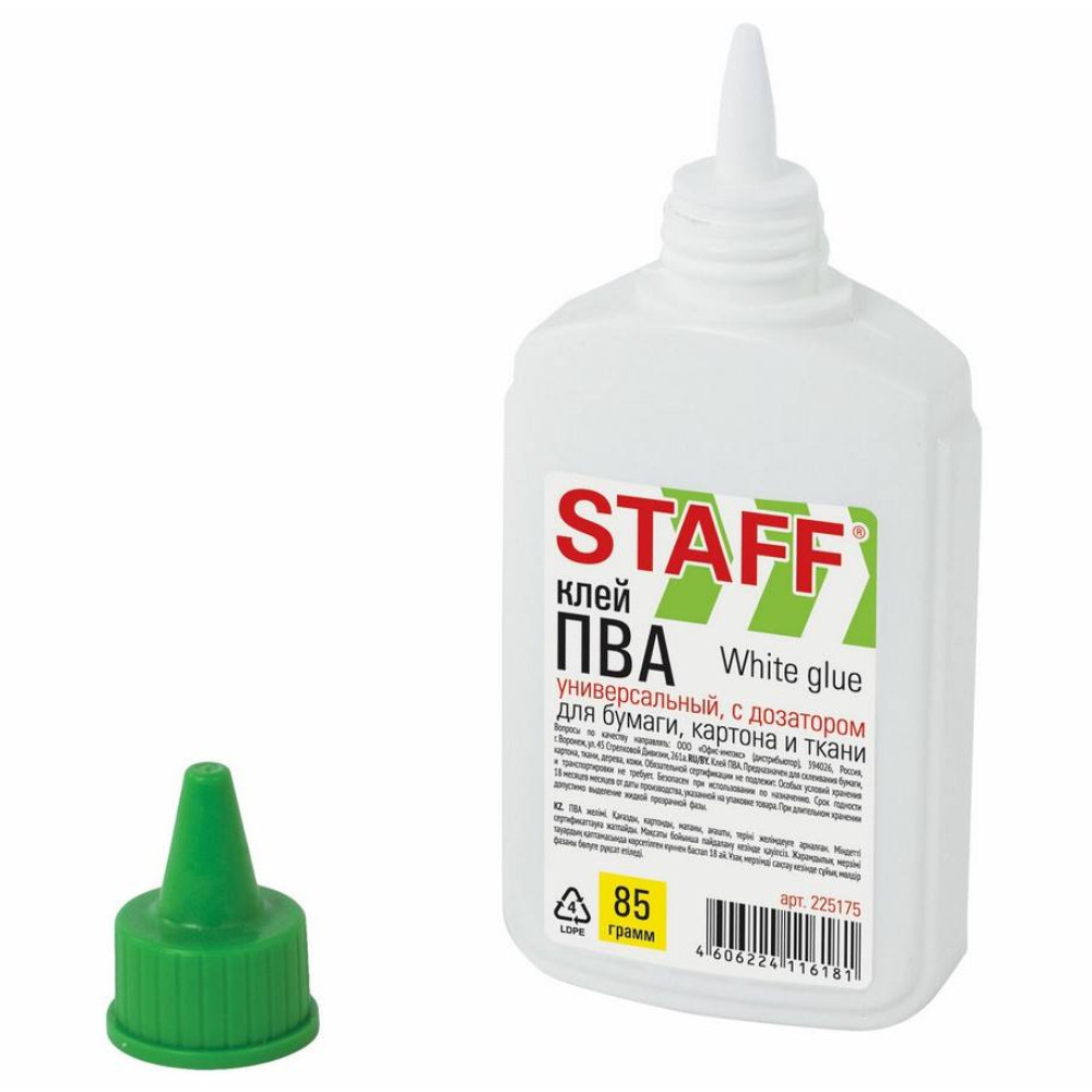 Клей ПВА Staff "Everyday" с дозатором применяется для склеивания бумаги, картона, дерева. Необходимо взболтать перед применением.
