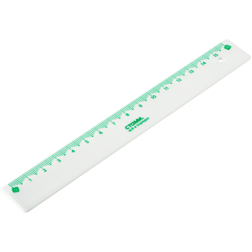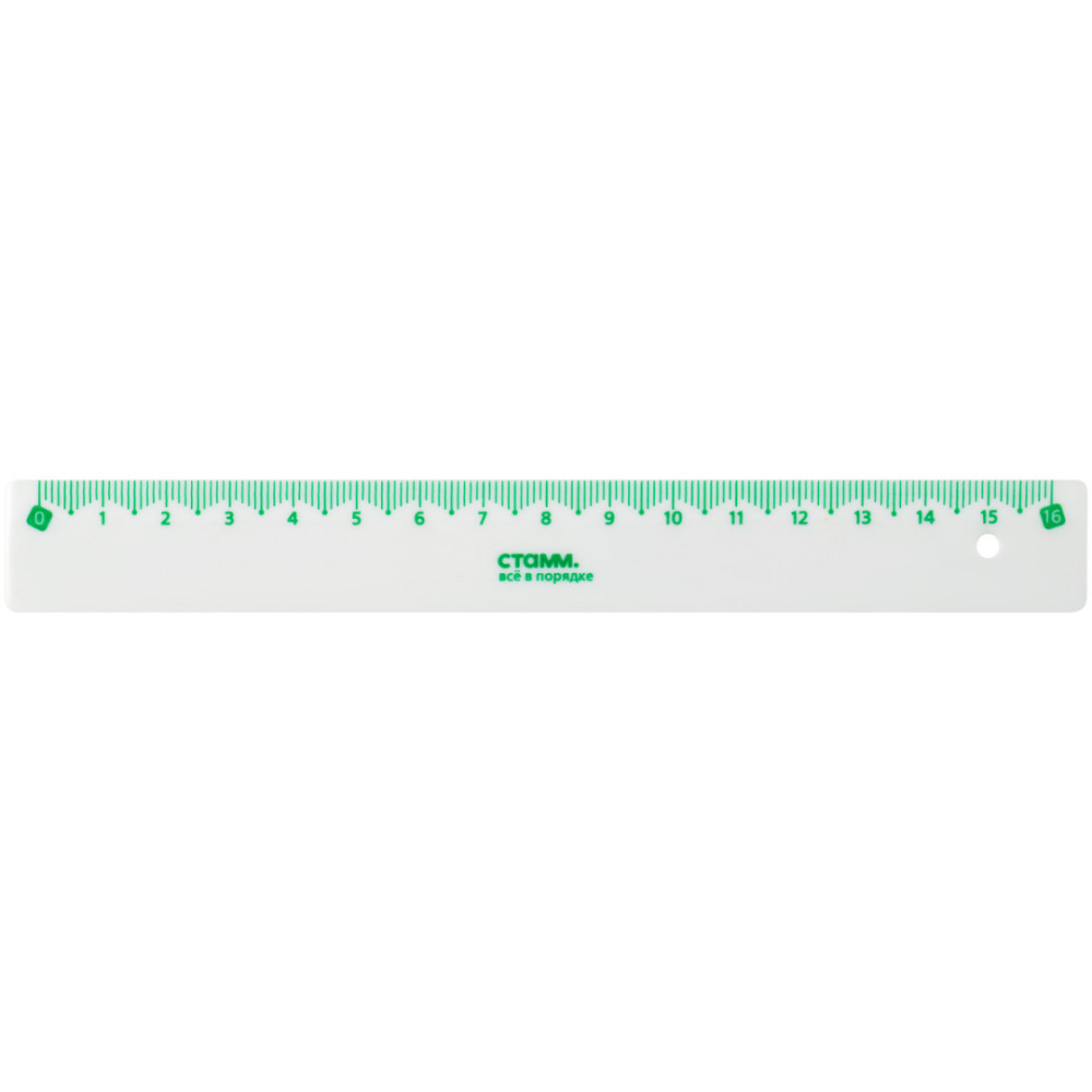 Линейка Стамм на 16 см с цветной шкалой для чертёжно-измерительных работ. Изделие имеет безопасные закруглённые края и чёткую контрастную миллиметровую шкалу. Линейка имеет гладкую глянцевую поверхность.
