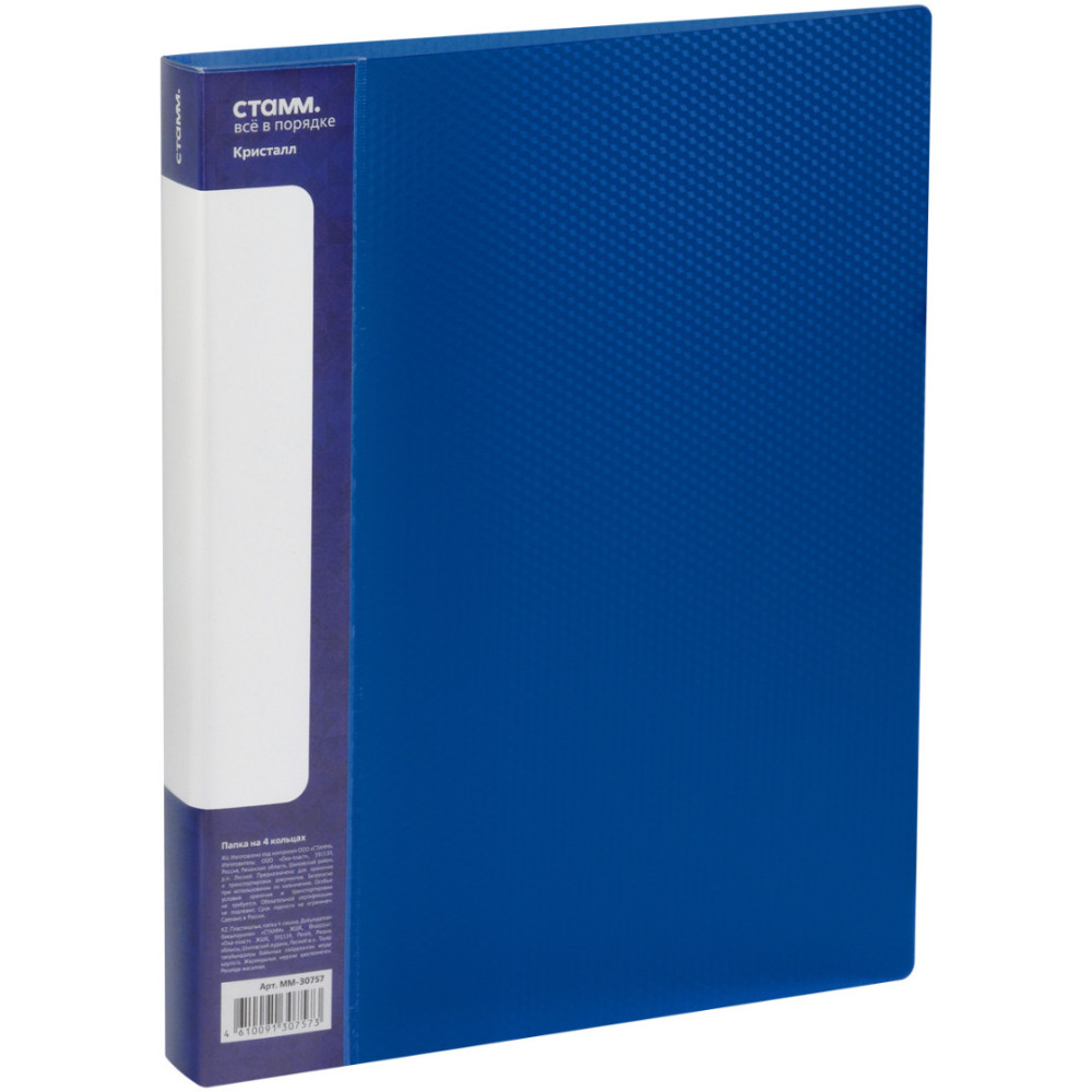 Папка на 4 кольцах Стамм Кристалл - А4 - 40 мм - Синяя