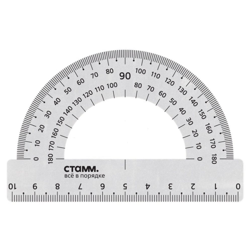 Транспортир металлический Стамм предназначен для чертёжных и измерительных работ. Материал – высококачественная сталь. Чёткая миллиметровая шкала. Длина шкалы – 10 см, окружность – 180 град. Цвет – серый металлик.