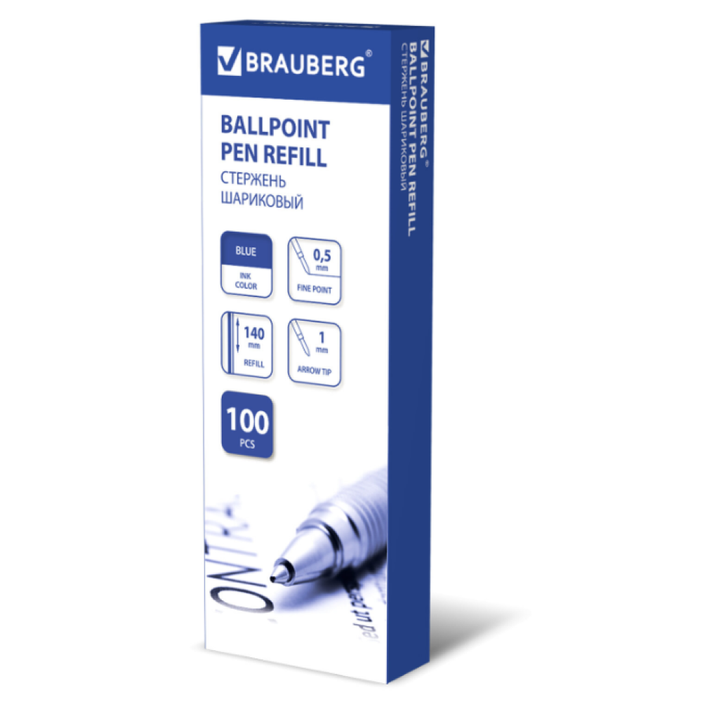 Стержень шариковый Brauberg - 140 мм - 1,0 мм - Масляные чернила - Синий