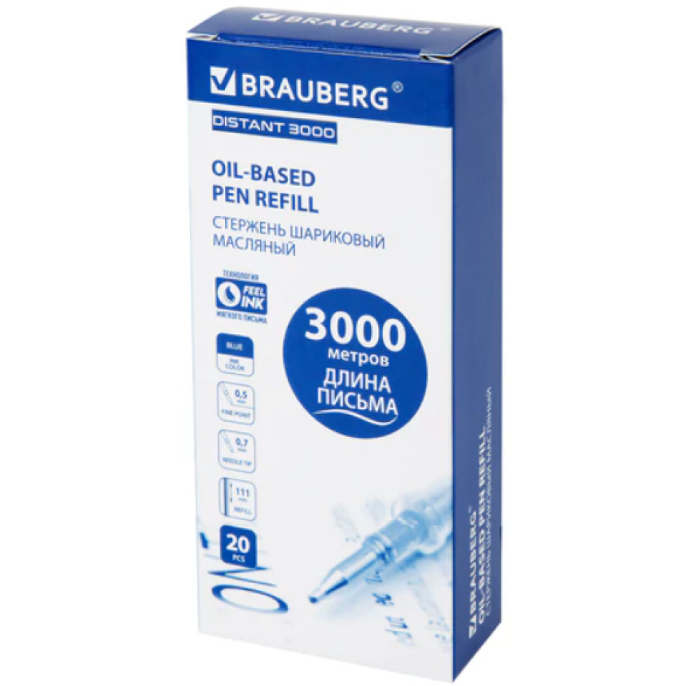 Стержень шариковый Brauberg Distant 3000 - 111 мм - 0,7 мм - Масляные чернила - Синий