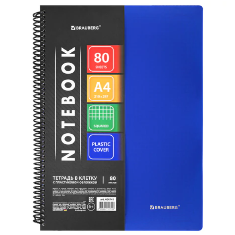Тетрадь Brauberg Metropolis - А4 - 80 листов - Пластиковая обложка - Клетка