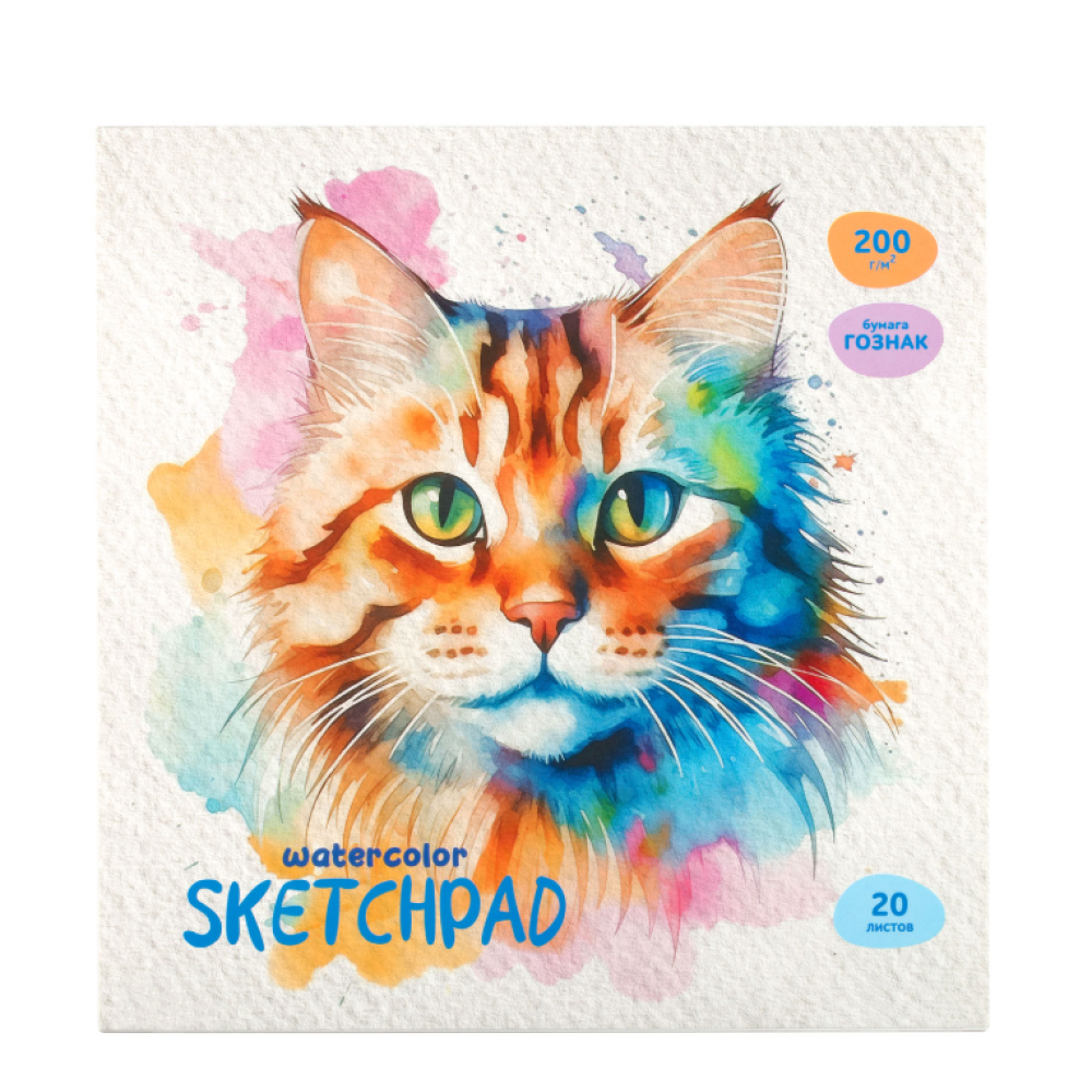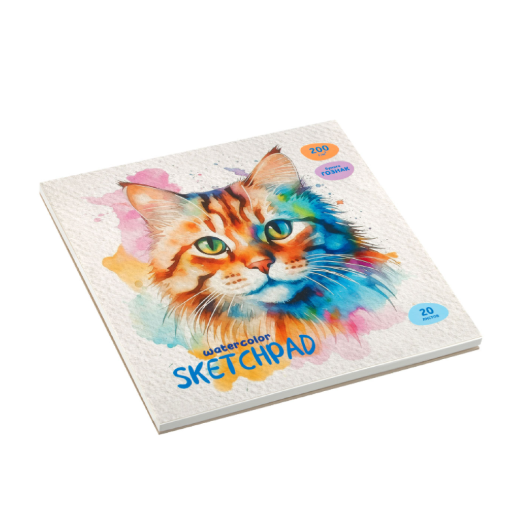 Скетчбук BG Акварельный кот - 200*200 мм - 200 г/м2 - 20 листов