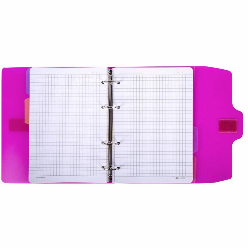 Тетрадь на кольцах Brauberg с разделителями, на липучке - А5 - 120 листов - Клетка - Розовая
