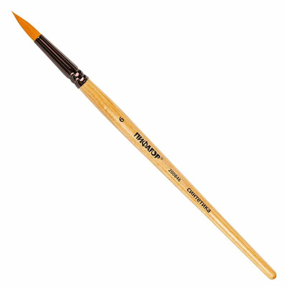 Кисть синтетическая Пифагор №6 подходит для работы с акварелью, гуашью, тушью, акрилом, а также для прорисовывания различных деталей рисунка. Снабжена защитным пластиковым колпачком. Кисть из синтетического ворса эластичная, не распадается, хорошо держит форму, долговечна и надежна. Кисть № 6 позволит прорисовывать детали и наносить крупные мазки и линии. Деревянную лакированную рукоятку кисти удобно держать в руке.