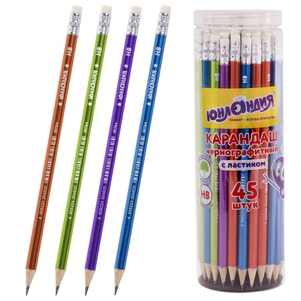 Карандаш чернографитный Юнландия Металлик - HB - С ластиком - Заточен
