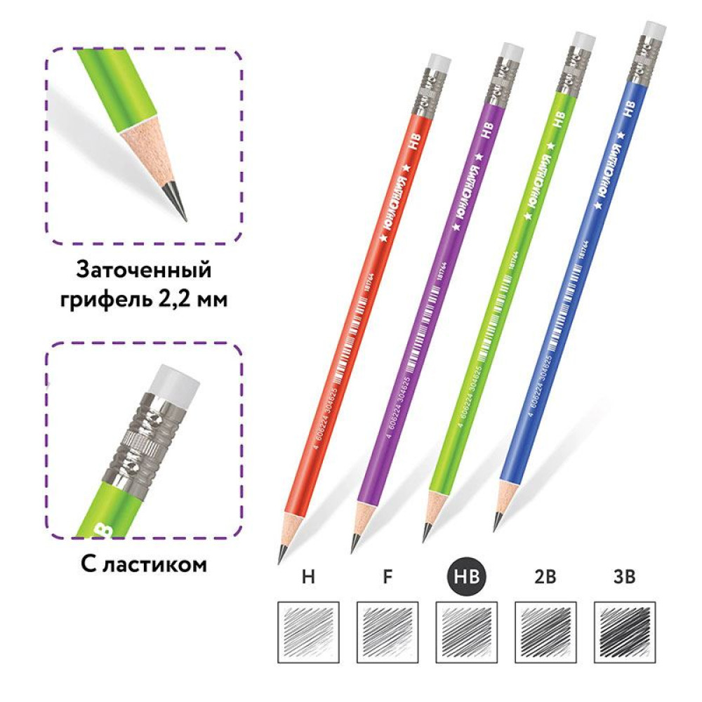 Карандаш чернографитный Юнландия "Щенок" изготовлен из дерева высокого качества и оснащен ластиком. Предназначен для детского и художественного творчества. Отлично подходит для выполнения чертежных, графических и художественных работ. Каждый карандаш имеет индивидуальный штрих-код. Легко затачивается, максимально устойчив к повреждениям. Изготовлен из дерева высокого качества. Имеет круглый корпус с яркой металлизированной печатью ассорти, оснащен ластиком. Карандаш длиной 190 мм обладает средней степенью твердости – HB.